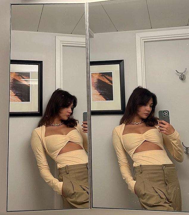 Aynı geceden farklı fotoğraflar paylaşan Aybüke Pusat, sonrasında iddialara dayanamamış olacak ki, karnının dümdüz olduğu başka bir fotoğrafı sosyal medya hesabında yayınladı.