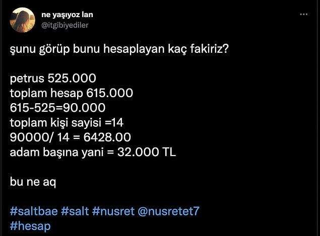 Nusret dün gece bu restorana ait bir hesap yayınlayınca hepimiz bir anda ne kadar fakir olduğumuzu yeniden hissettik.
