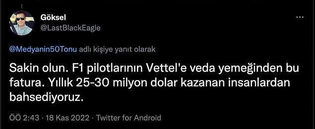 Ancak hesap F1 pilotlarına ait değil. Bu ekibin dünyaca ünlü ve Michelin yıldızlı Hakkasan Restoran’da yemek yediği sonradan anlaşıldı.
