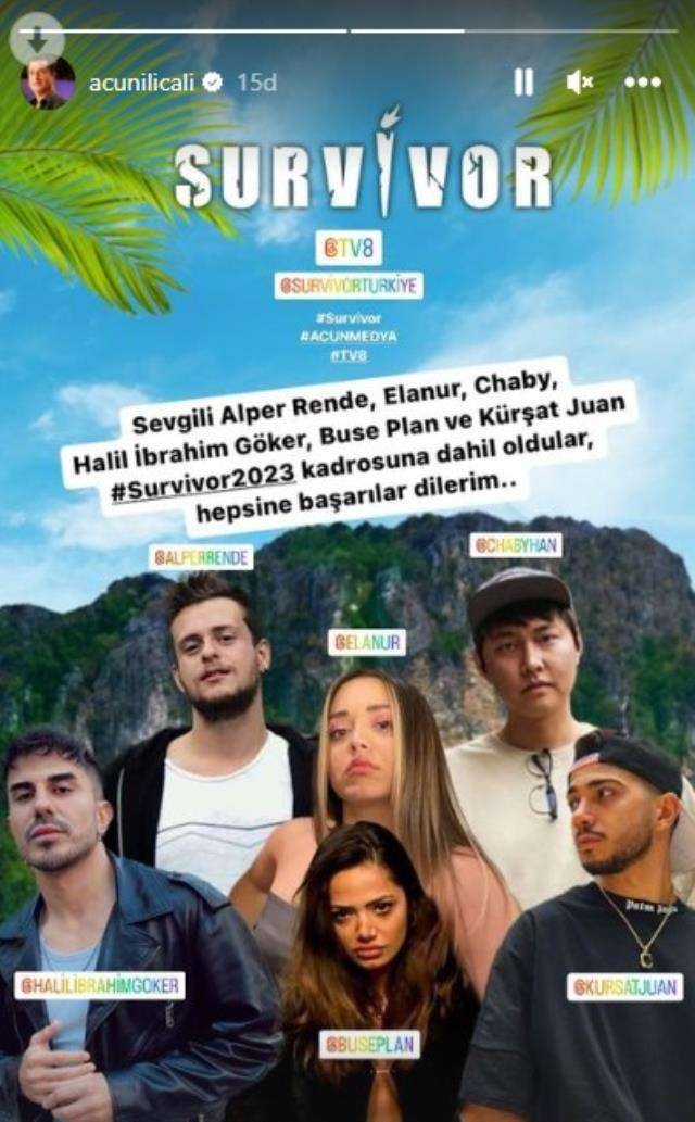 2020 yılında Acun Ilıcalı’nın platformu Exxen’de yayınlanan Exatlon Challenge yarışmasında yarışan Alper Rende, Elanur, Chaby, Halil İbrahim Göker, Buse Plan ve Kürşat Juan, Survivor 2023’ün kadrosuna dahil oldu. Instagram hesabından isimleri paylaşan Ilıcalı “Kadroya dahil oldular, hepsine başarılar dilerim” ifadelerini kullandı.