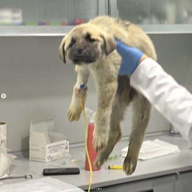 Önce sosyal medya fenomeni Meriç Keskin barınaktan kurtarılan bu bir deri bir kemik canı sahiplenmiş,