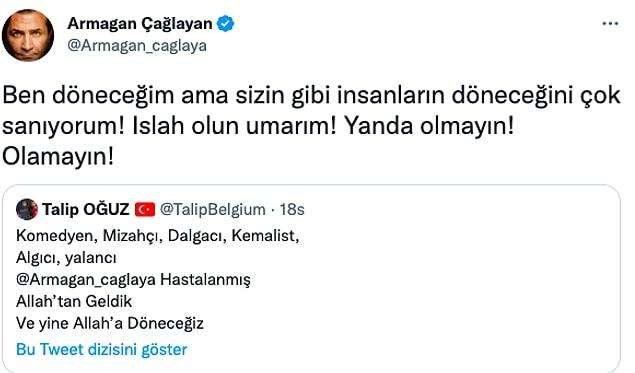 Öyle ki Twitter üzerinden gelen bir yoruma Armağan Çağlayan’da sessiz kalamadı ve öfkesini kustu.