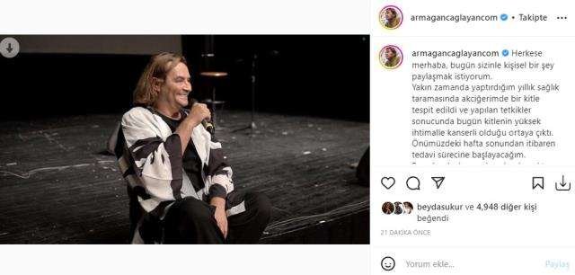 Ekranların başarılı televizyon yapımcısı Armağan Çağlayan, sosyal medya hesabından bir paylaşım yaparak kansere yakalandığını söyledi. Yaşadığı süreçten bahseden Çağlayan, gösterilerine ve programlarına ara vereceğini duyurdu.