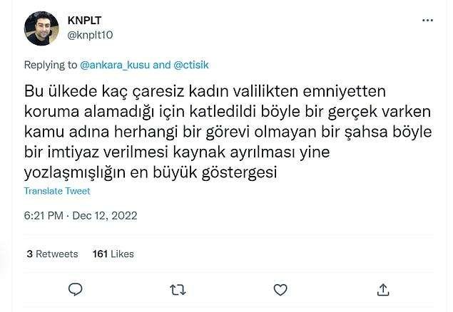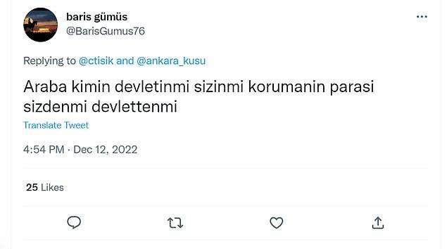 Gazeteci, 2011 yılından beri iki koruması olduğunu, bunun artık bir korumaya düşürüldüğünü ve bununla birlikte çakarlı arabası olmadığını dile getirdi.