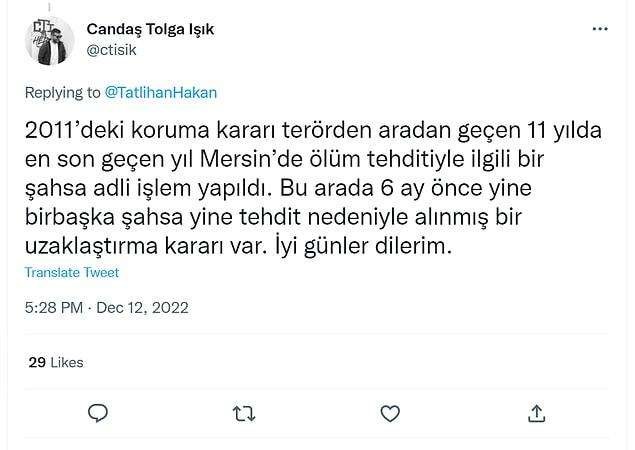 Gazeteci Candaş Tolga Işık aldığı tehditler sonucu iki koruma kararı olduğunu belirtmişti.