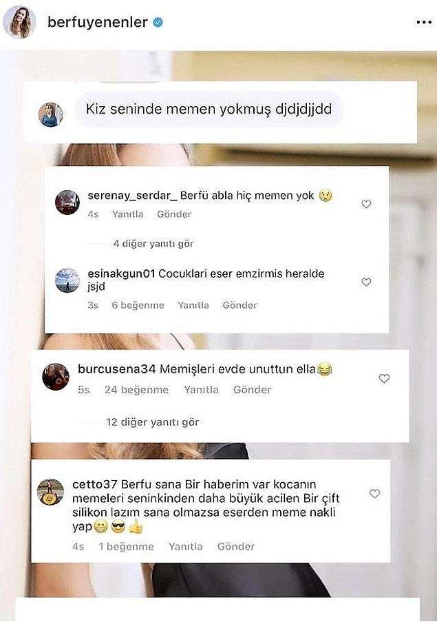 Berfu’ya zaman zaman sosyal medya kullanıcılarından ilginç yorumlar geliyor. Bunlardan bir tanesi de geçtiğimiz aylarda gelen “MEMEN YOK” yorumuydu (niyeyse…)