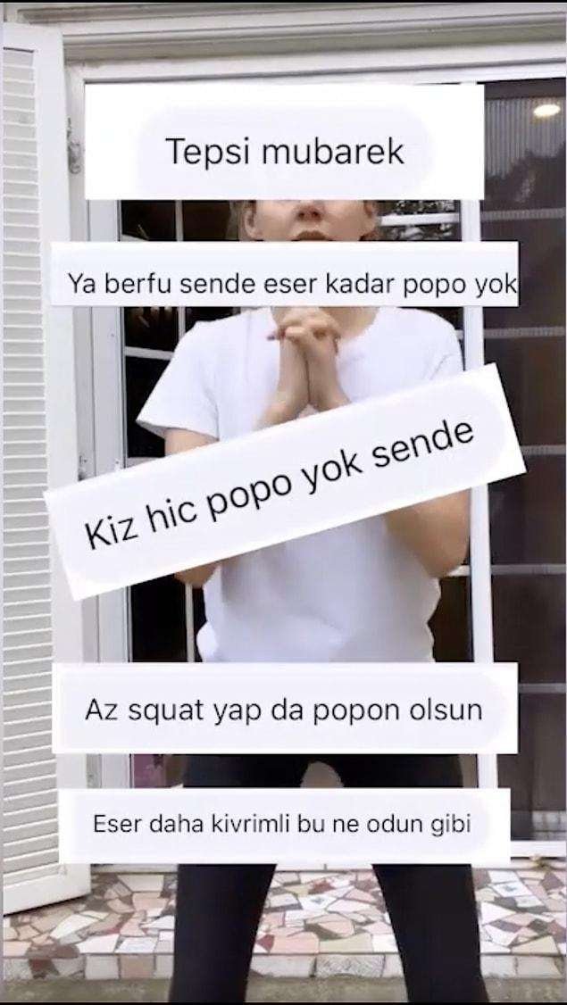 Meme konusunu kapatanlar şimdi de Berfu’nun poposuna taktı. Berfu, poposuyla ilgili gelen yorumları şu şekilde paylaştı 👇