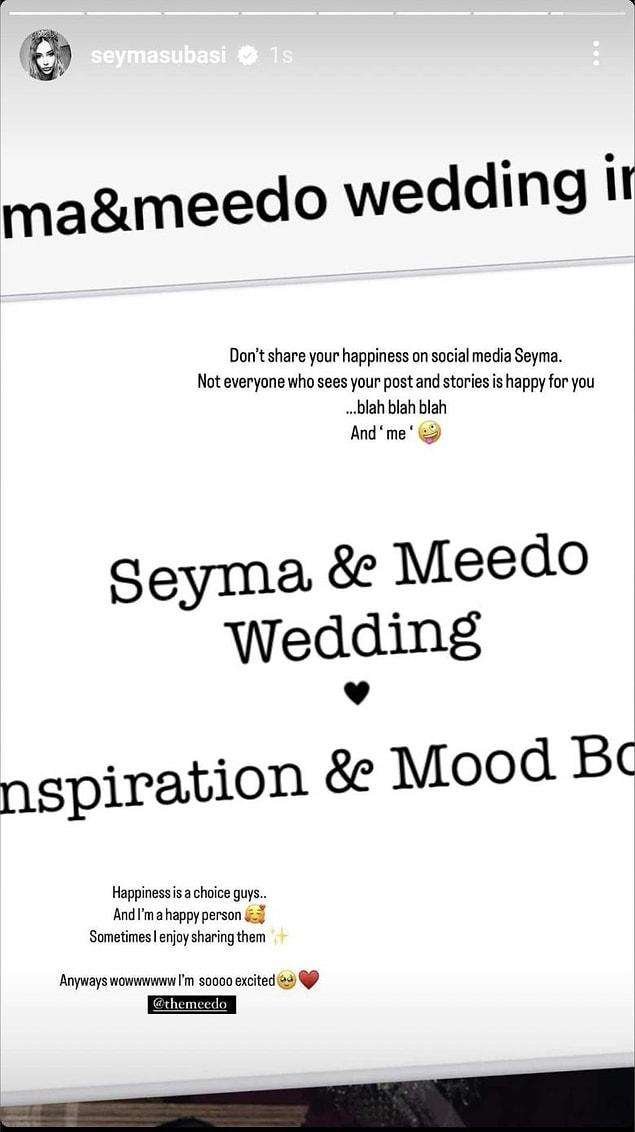 Hatta Şeyma Subaşı Instagram’da “Senin karın olmak için sabırsızlanıyorum” yazan bir hikaye paylaştı.