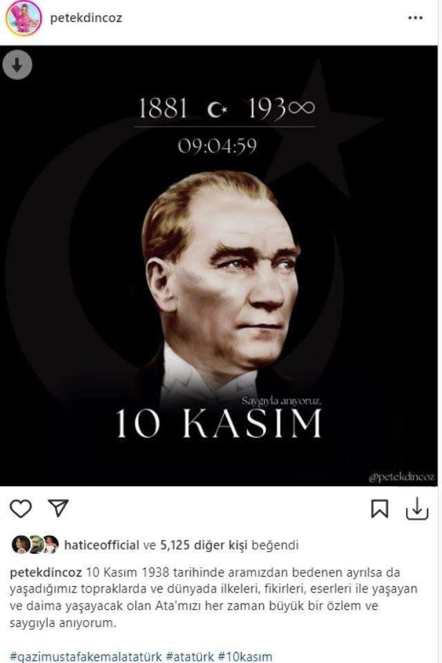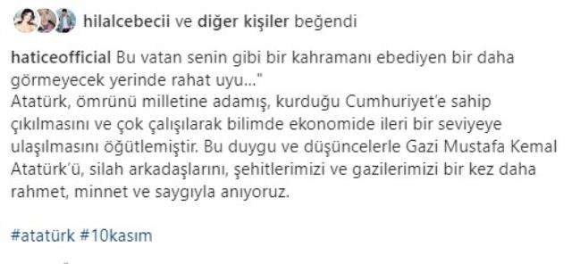 Gazi Mustafa Kemal Atatürk’ün ebediyetine intikalinin 84’ncü yıl dönümünde ünlü isimler sosyal medya hesaplarından duygusal paylaşımlar yaptı.