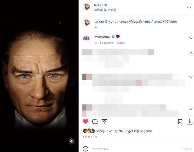 Ulu Önder Mustafa Kemal Atatürk’ün ebediyete intikalinin 84. yılında, ölüm anı 09.05’te ülkenin her yerinde hayat durdu. Sirenler çaldı, bayraklar yarıya indirildi. Tüm ülke olarak Ata’mızı özlemle andık. Ünlü isimler, Atatürk için sosyal medya hesaplarından 10 Kasım mesajları paylaştı. İşte o paylaşımlar;