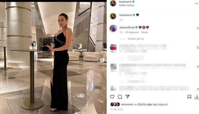 Siyah derin yırtmaçlı ve göğüs dekolteli elbisesiyle poz veren Varol eşinden iltifat aldı. Alişan, 4 yıllık eşi Buse Varol’un pozlarına kalp ve nazar boncuğu emojisi ekledi. Buse Varol, Alişan’la poz vermeyi de ihmal etmedi.
