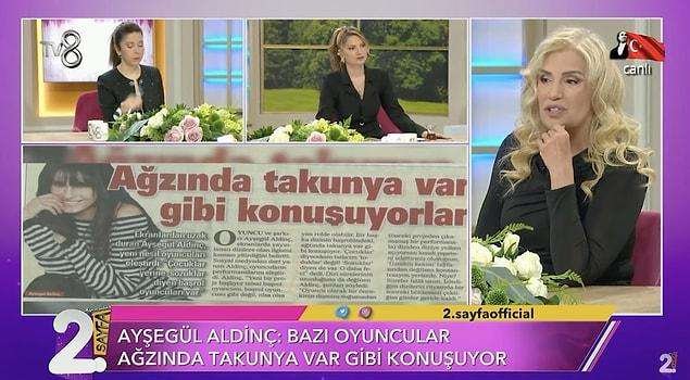 Çiğdem Tunç, Ayşegül Aldinç’in ”Ağzında takunya var gibi konuşuyorlar” sözüne yönelik de konuştu. Tunç, Aldinç’in söylediklerine hak verdi