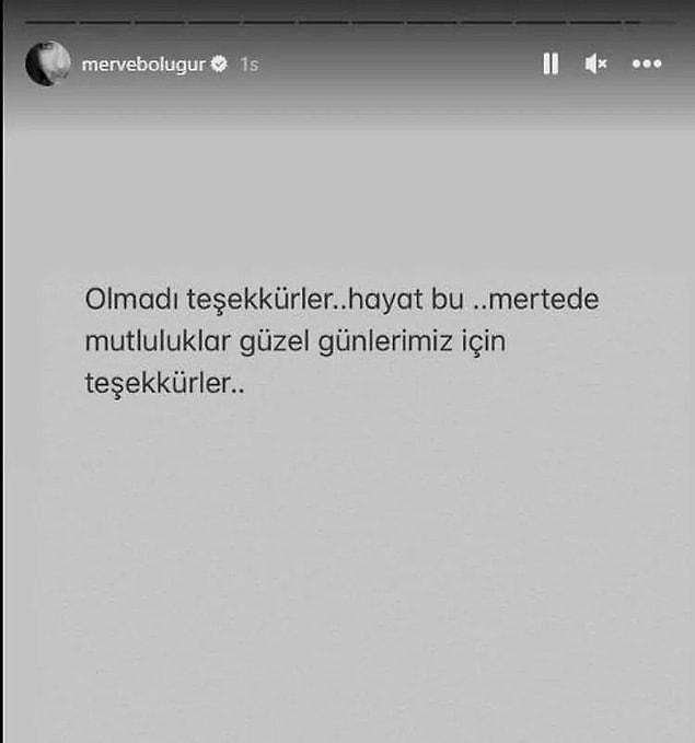 Merve Boluğur Instagram hesabından yaptığı paylaşımla ayrılacaklarını doğrulamış, güzel günler için Mert Aydın’a teşekkür etmişti…
