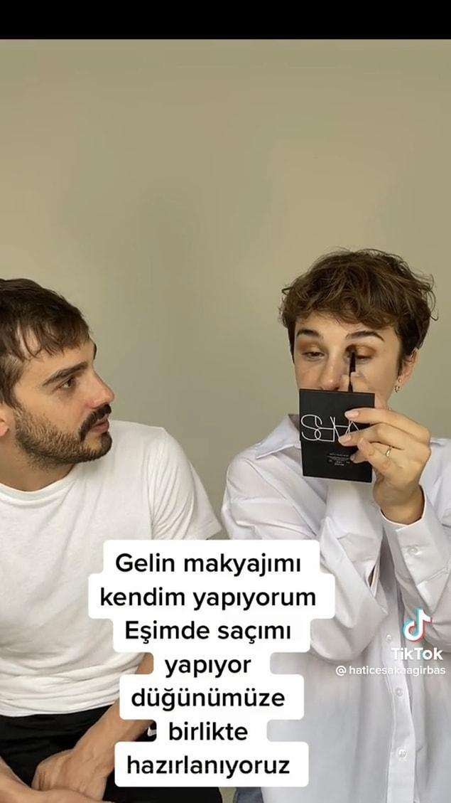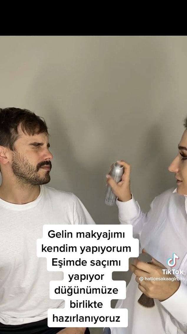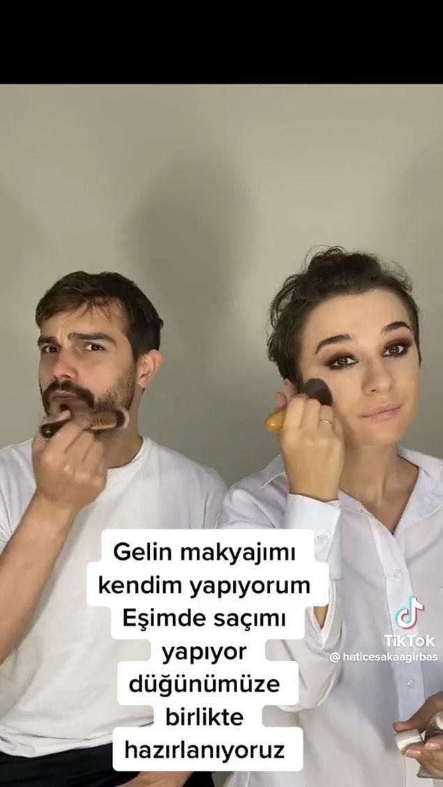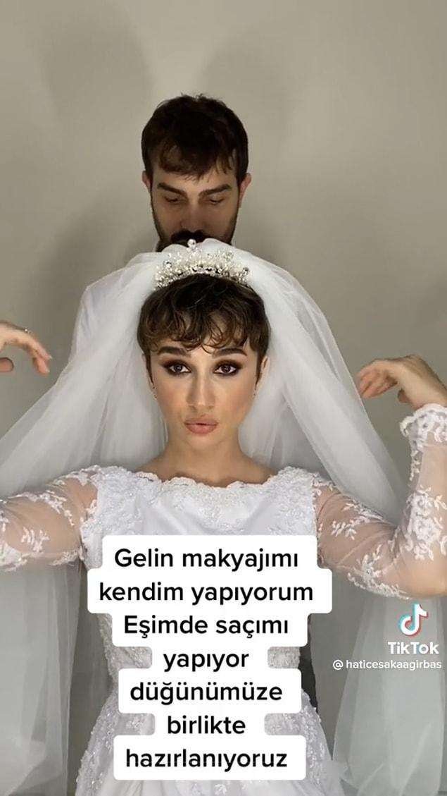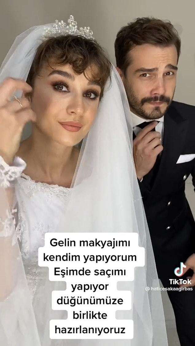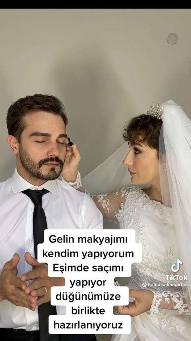 TikTok hesabında @haticesakaagirbas adına sahip kullanıcı, eşiyle birbirlerini düğünlerine hazırladıkları videoyu hesabına yükledi.