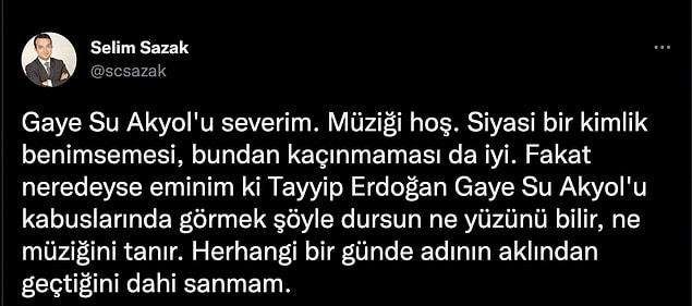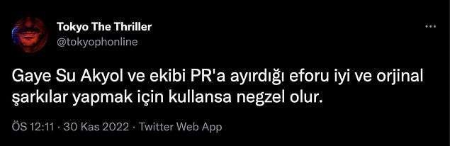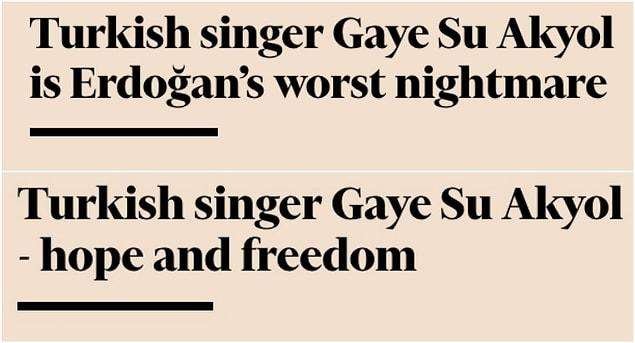 Yazının başlığı “Türk şarkıcı Gaye Su Akyol Erdoğan’ın en büyük kabusudur” başlığı atıldı. Akyol’un kıyafetlerinden yola çıkarak yapılan bu benzetme kısa sürede sosyal medyada gündem oldu. Çünkü kullanıcılar, Gaye Su Akyol’un dünya çapında kendi ismi için PR çalışması yaptırdığını düşünüyor.