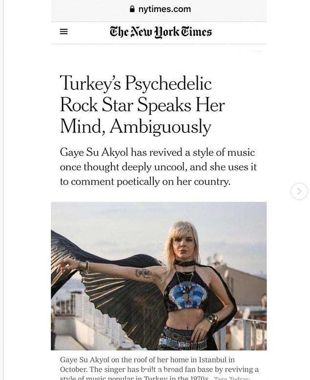 2019 yılında Amerika’nın ünlü New York Times gazetesinde Gaye Su Akyol için “Türk Rock müziğinin en büyük umudu” şeklinde ifadeler kullanışmıştı.