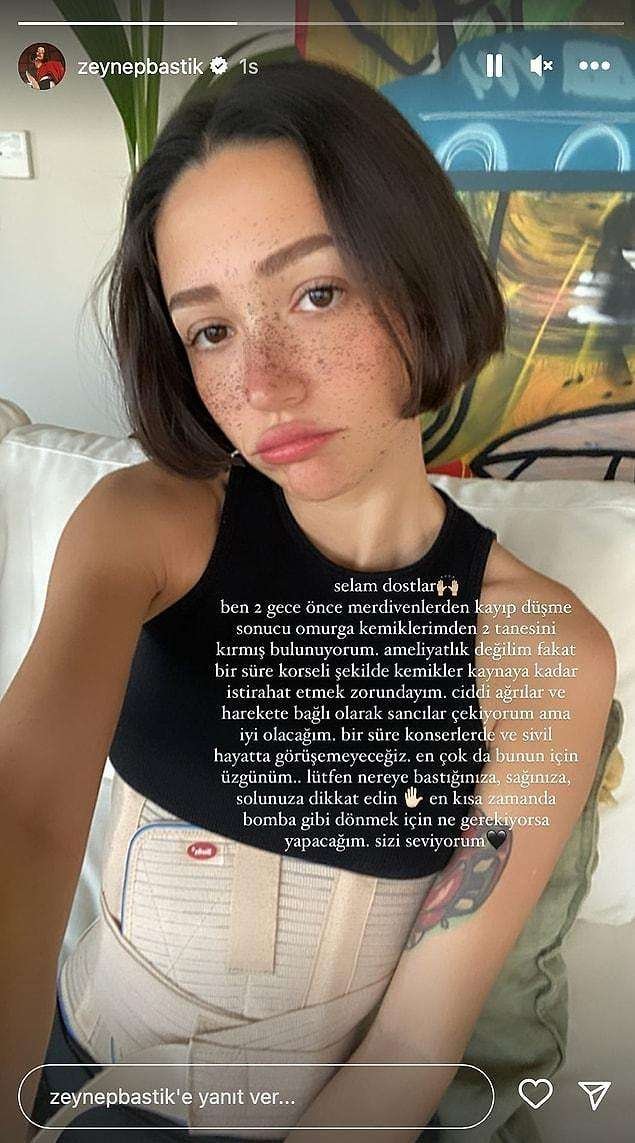Sevilen şarkıcı Zeynep Bastık, geçtiğimiz günlerde merdivenlerden düşerek omurga kemiğini kırmıştı. Hayranlarını endişelendiren bu haberin ardından Zeynep Bastık’tan durumuna ilişkin yeni bir paylaşım geldi…