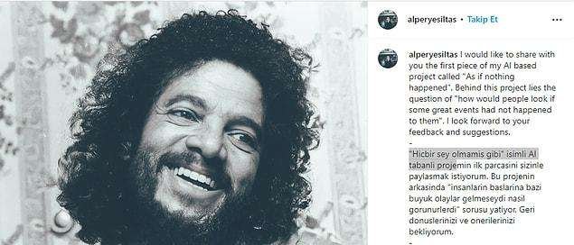 Fotoğraf sanatçısı Alper Yeşiltaş geçtiğimiz günlerde yayımladığı bir proje ile hayatını kaybetmiş yıldızları yeniden sevenleri ile buluşturdu. Adeta ölmüş ünlüleri yapay zeka sayesinde dirilten fotoğrafçının, ‘Hiçbir şey olmamış gibi’ isimli AI tabanlı projesinden görüntüler dünya basınında büyük ses getirdi. Çalışmanın öne çıkan isimleri arasında Prenses Diana, Michael Jackson, Kurt Cobain, Jimi Hendrix, John Lennon, Janis Joplin ve Freddie Mercury gibi isimler yer aldı.