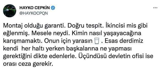 Tüm bu iddiaların ardından Hayko Cepkin’den de bir yorum geldi. Cepkin, “Mesele neydi. Kimin nasıl yaşayacağına karışmamaktı. Onun için yarasın. Esas derdimiz kendi her haltı yerken başkalarına ne yapması gerektiğini dikte edenlerle” dedi…