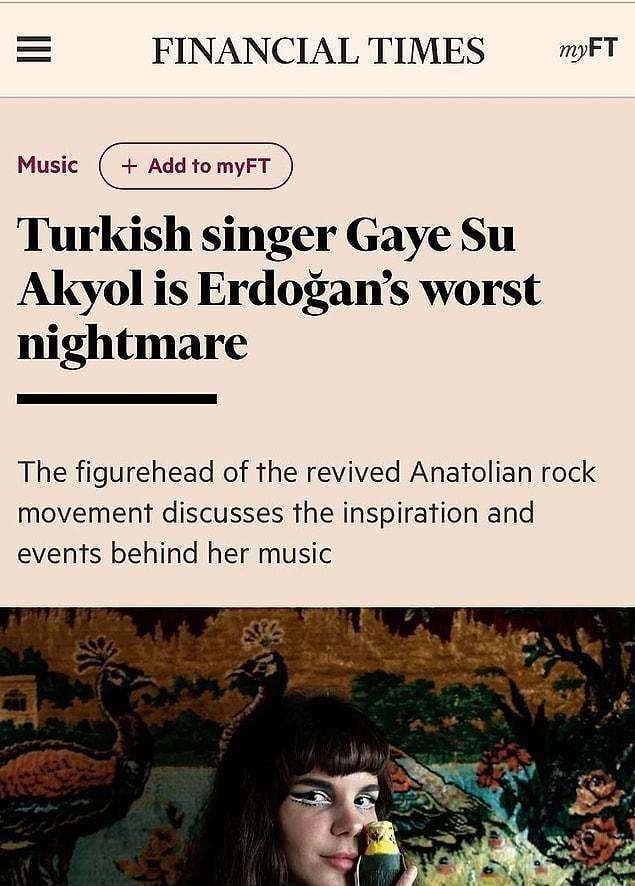 İngiliz Financial Times gazetesi geçtiğimiz günlerde ünlü şarkıcı Gaye Su Akyol için ‘Tayyip Erdoğan’ın en korkulu rüyası’ tanımlamasını yapınca, yepyeni bir tartışmanın fitili ateşlenmişti.