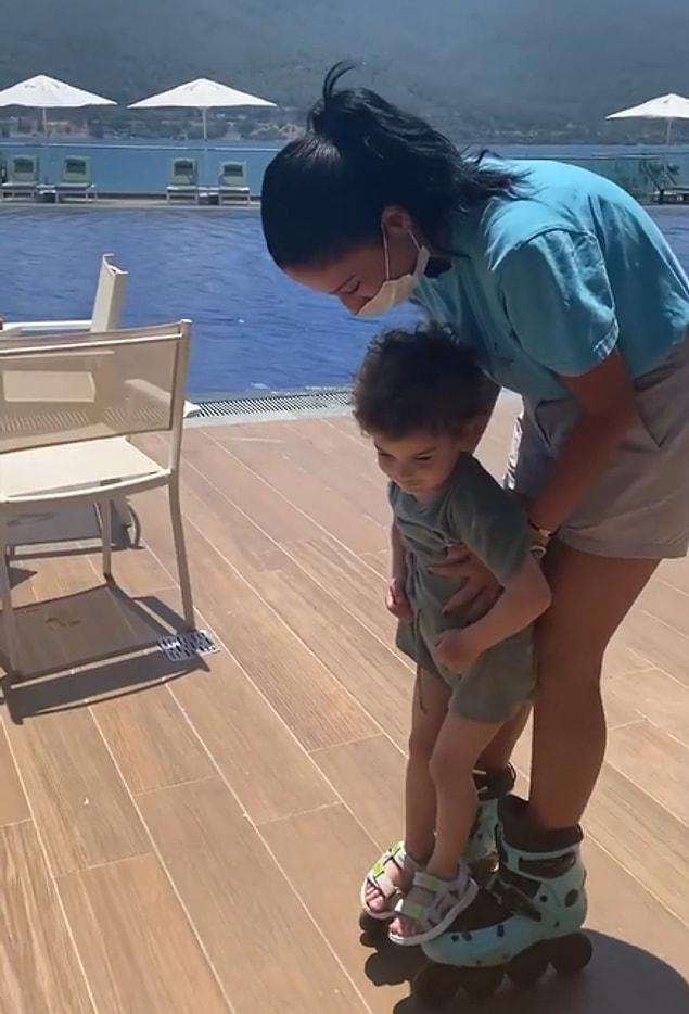 Sık sık oğluyla tatile çıkan Gökçe Akyıldız, Ömer Aslan’a paten sürmeyi öğretmekte kararlı gibi, değil mi?