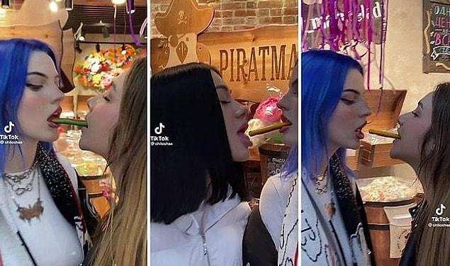 1- 60 milyondan fazla insan tarafından izlenen TikTok videosunda, kadınların birbirlerine ağızdan ağza şeker verdikleri anlar dikkat çekti.