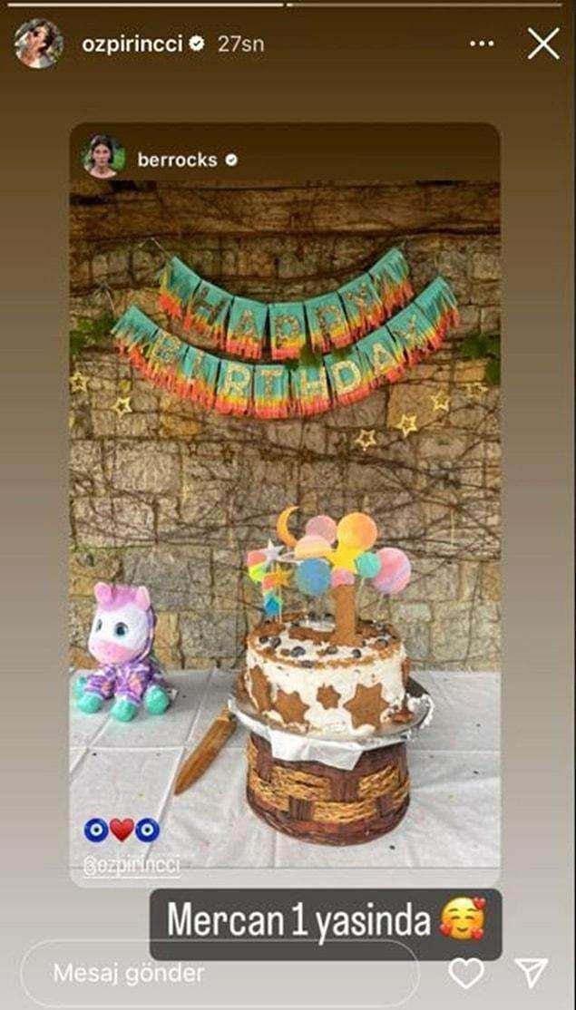 Öte yandan Özpirinçci’nin yakın arkadaşı Berrak Tüzünataç, Mercan’ın doğum günü kutlamasından bir kare paylaştı.