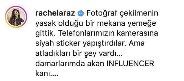 Mekandan paylaştığı fotoğraflara da bu notu düştü Rachel Araz…
