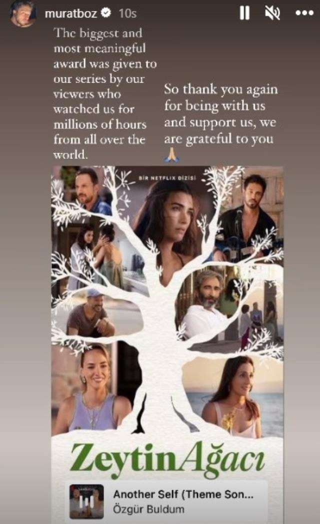 Murat Boz dizinin kapak fotoğrafını koyarak İngilizce yaptığı paylaşımda “Dizimize en anlamlı ödülü dünyanın her yerinden bizi milyonlarca saat izleyen seyircilerimiz verdi. Bu yüzden bizimle olduğunuz ve bizi desteklediğiniz için tekrar teşekkür ederiz, size minnettarız” mesajını yayınladı.