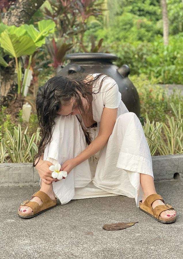 Atagül, çiçek koklarken fotoğrafını paylaşarak ‘Siz hiç çiçek kokusundan büyülenip uykuya daldınız mı?’ açıklamasını yaptı.