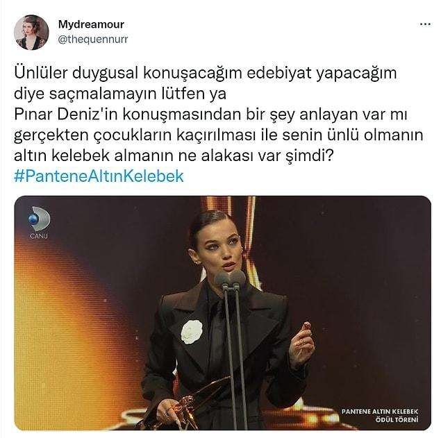 Yargı dizisiyle Pantene Altın Kelebek Ödül Töreni’nde ‘En İyi Kadın Oyuncu’ ödülünü alan Pınar Deniz’in konuşmasını hepiniz duymuşsunuzdur!