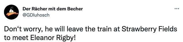 Beatles’ın ‘Ticket to Ride’ isimli şarkısına ufak bir kelime şakasıyla gönderme yapılan tweet kısa sürede viral oldu, bütün goygoycular şarkı isimlerinden malzeme üretti. 😂