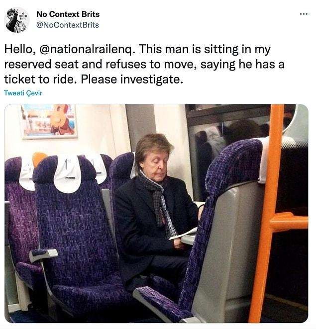 Geçtiğimiz gün İngilizlere mahsus komik paylaşımlar yapan No Context Brits sayfası da McCartney’nin metro yolculuğundaki hallerini epey eğlenceli bir tweet atarak paylaştı.