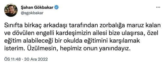 2022 bitmeden yüzümüzü güldürmeyi başardı… Şahan Gökbakar’ı bu düşüncesi için tebrik ediyoruz… Umarız zorbalığa uğrayan çocuğumuz bu günleri atlatır ve gelecekte daha mutlu ve başarılı bir hayat yaşar…