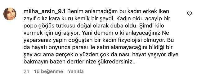 Takipçisi, Selin Ciğerci’nin cinsiyet geçişini yapsa bile erkek yapısından kurtulamadığını söyledi.