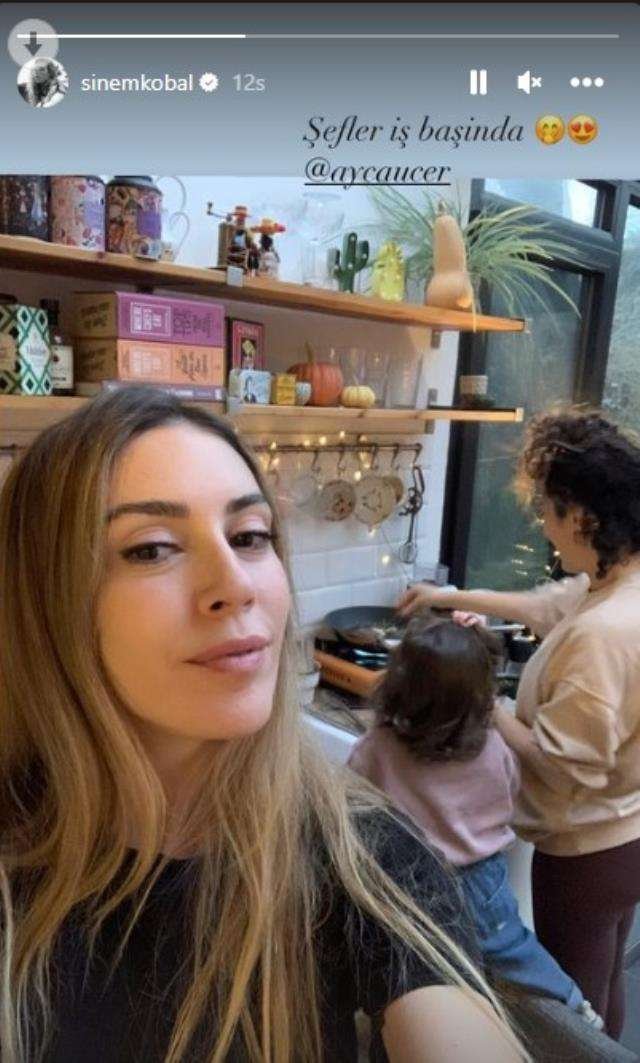 Kenan İmirzalıoğlu ile nikah masasına oturduktan sonra iki bebek dünyaya getiren ve oyunculuğa ara veren Sinem Kobal, sosyal medya hesabından kızıyla yemek yaptığı anları paylaştı. Çocuklarını gözlerden uzak büyüten oyuncu, kızının yüzünü de göstermedi.