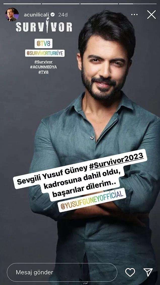 Acun Ilıcalı, Survivor 2023 kadrosunda yer alacak dördüncü ismin Yusuf Güney olduğunu açıklamıştı.