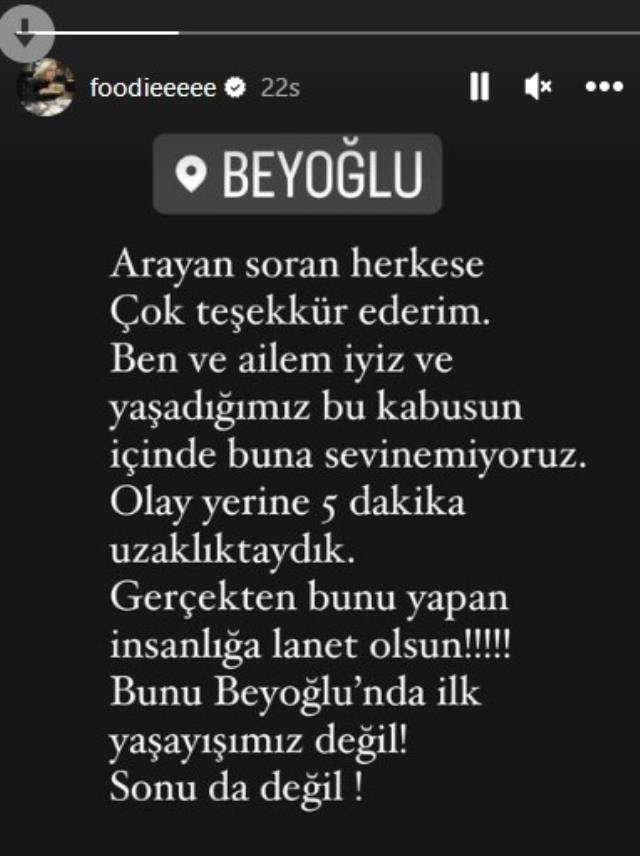 Taksim’de bombalı saldırının düzenlendiği İstiklal Caddesi’nin yakınında dükkanı olan eski MasterChef Türkiye yarışmacısı Burcu Önal, ölümden döndü. Yaşadığı korku dolu anları sosyal medya hesabından paylaşan Önal, “Olay yerine 5 dakika uzaklıktaydık” dedi.