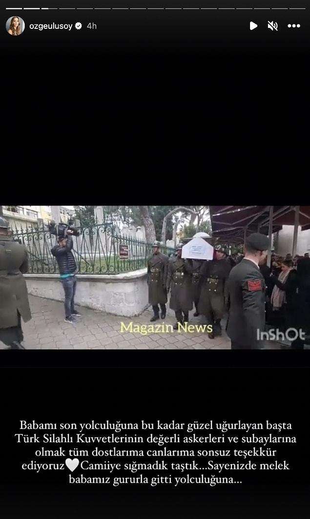 Bu anları sosyal medya hesabından paylaşan Ulusoy, “Babamız gururla gitti son yolculuğuna…” sözleriyle duygularını dile getirdi.