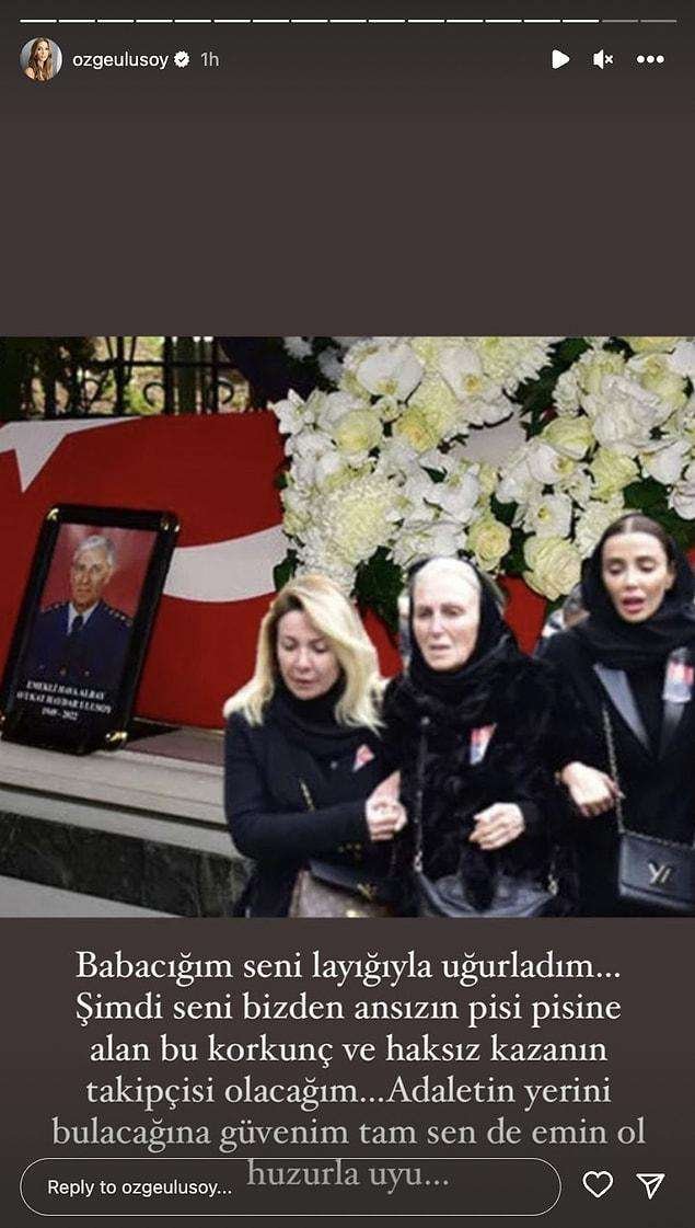 Ardından Ulusoy, kazayla ilgili bir paylaşımda bulundu. “Babacığım seni layığıyla uğurladım. Şimdi seni bizden ansızın pisi pisine alan bu korkunç ve haksız kazanın takipçisi olacağım” sözleriyle dikkat çekti.