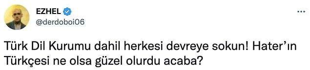 Yaptığı son paylaşımda ‘hater’ kelimenin en iyi Türkçe karşılılığının ne olacağıyla ilgili paylaşım yaptı.