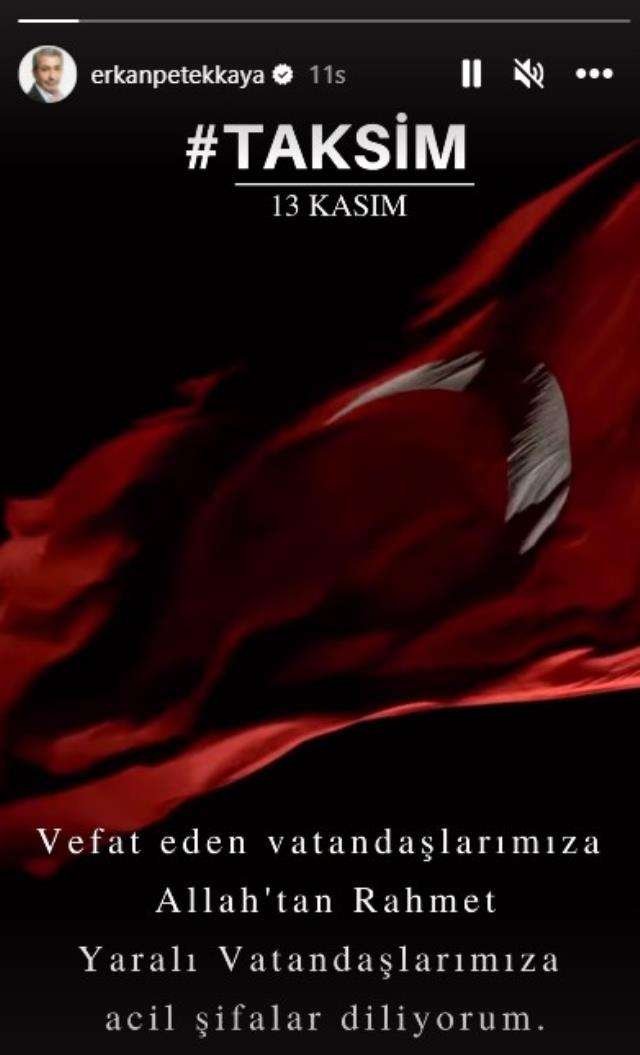 “Taksim… Çok üzüldüm. Hayatını kaybedenlerin aile ve yakınlarına başsağlığı, yaralılara acil şifalar dilerim.”