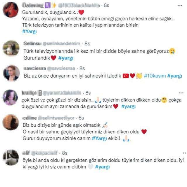 Dizideki duygulandıran 10 Kasım sahnesi sosyal medyada da geniş yankı uyandırdı. Kısa sürede Twitter’da gündem olan sahne için “Tüylerim diken diken oldu” ve “Hem duygulandım hem de gururlandım” yorumunu yapıldı.